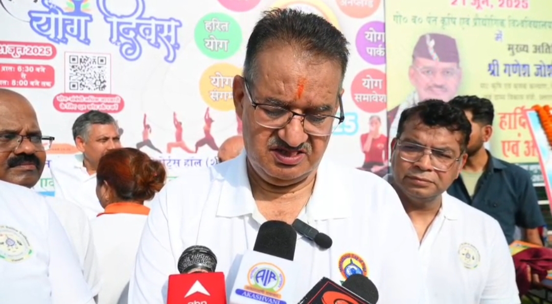 योगाभ्यास के बाद कृषि मंत्री गणेश जोशी ने 11वें अन्तर्राष्ट्रीय योग दिवस की बधाई एवं शुभकामनाऐं प्रेषित की। उन्होंने कहा कि प्रधानमंत्री मोदी के नेतृत्व में योग की जननी भारत ने इसे विश्व पटल पर लाया है। आज देश के 175 देश एक ही समय पर योग कर रहे थे। योग का अर्थ जोड़ना है और पीएम मोदी के नेतृत्व में आपसी सामांजस्य से जुड़ रहे हैं। उन्होंने अपने प्रेरणादायक संबोधन में योग को जीवन की अनिवार्य आवश्यकता बताते हुए कहा कि नियमित योगाभ्यास से शारीरिक और मानसिक स्वास्थ्य में संतुलन आता है,