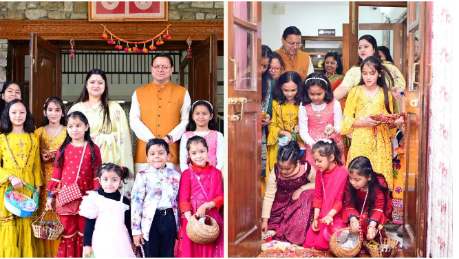 उत्तराखंड का लोकपर्व फूलदेई मुख्यमंत्री आवास में मुख्यमंत्री ने सपरिवार धूमधाम से मनाया। मुख्यमंत्री पुष्कर सिंह धामी की उपस्थिति में मुख्यमंत्री आवास में रंग विरंगे परिधानों में सजे बच्चों ने देहरी में फूल व चावल बिखेरकर पारंपरिक गीत ’फूल देई छमा देई, जतुक देला, उतुक सई, फूल देई छमा देई, देड़ी द्वार भरी भकार’ गाते हुए त्योहार की शुरुआत की। मुख्यमंत्री धामी ने सभी बच्चों को आशीर्वाद देते हुए उनके उज्ज्वल भविष्य की कामना की। इस अवसर पर मुख्यमंत्री ने प्रदेशवासियों को फूलदेई त्यौहार की बधाई व शुभकामनाएं देते हुए देश व प्रदेश की सुख-समृद्धि की कामना की। उन्होंने कहा कि लोक पर्वों का हमारे जीवन में विशेष महत्व है।